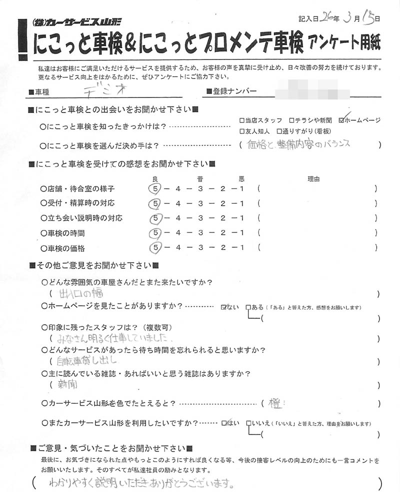 Tags: アンケート, ノート, 山形, 車検